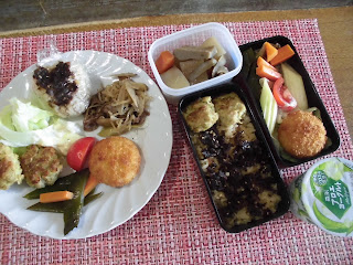 日曜日でも仕事場に出てくる、こんな時は休みの日のお昼を弁当に詰める。 キノコを沢山一度に煮ておき、ありあわせの野菜やベーコンを炒めて、玉ネギドレッシングで味付けをする。 作り置きの自家製ドレッシングだ。作り方は『男の健康料理』を参照願いたい。 焼きソバの上に彩り三兄弟(...
